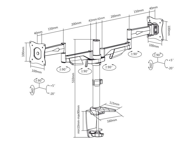 Regulowana konstrukcja uchwytu biurkowego LC-UB 223 PRO umożliwia swobodą regulację kąta obrotu, pochylenia oraz odległości ekranów od wzorku użytkownika. Dodatkowo uniwersalny uchwyt biurkowy LC-UB 223 PRO pozwala na obracanie ekranem w zakresie 360 stopni, co pozwala na komfortowe oglądanie krajobrazów i portretów.