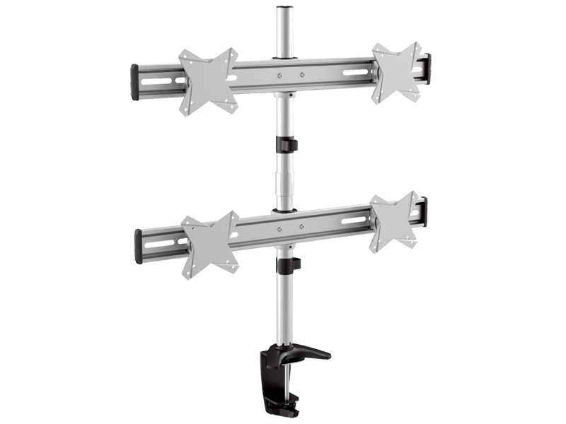 Uchwyt do biurka na 4 monitory LCD/LED LC-UB 427 Elegant charakteryzuje się eleganckim wykończeniem, możliwością współpracy z monitorami różnych producentów oraz wszechstronną regulacją zamocowanych ekranów względem kierunku i wysokości wzroku użytkownika. Idealny dla domu lub biura.