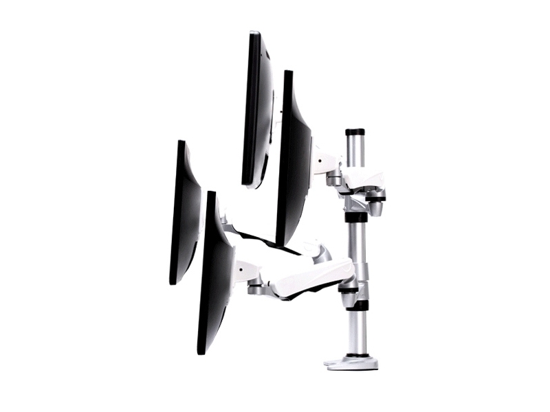 Uchwyt do biurka KNO-S4 C umożliwia wygodny i bezpieczny montaż czterech monitorów LCD/LED, a dzięki odpowiednio przemyślanej konstrukcji jest w stanie sprostać nawet najbardziej wymagającym użytkownikom. Możliwość wszechstronnej regulacji położenia ekranów, pozwala na ich optymalne dostosowanie do położenia wzorku użytkownika. Kolejną zaletą uchwytu do monitorów LED/LCD KNO-S4 C jest uniwersalny rozstaw otworów montażowych VESA (do 100 x 100 mm), dzięki któremu pasuje on do większości ekranów o przekątnej od 15 do 24 cali. Warto także wspomnieć o funkcji PIVOT oraz systemie zacisków do prowadzenia kabli. Produkt wykonany z najwyższej klasy aluminium.