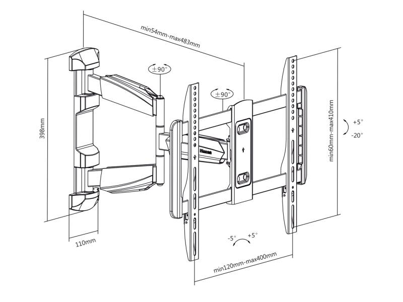 Dzięki odpowiedniej konstrukcji wieszak TV z serii LC-U9R2 55 umożliwia regulację kąta obrotu (+/-90 stopni), pochylenia (od -20 do +5 stopni) oraz odległości ekranu od ściany (54 - 483 mm). Bardzo duża swoboda w regulacji położenia ekranu telewizora względem wzorku widza, pozwala na zapewnienie najwyższego komfortu oglądania filmów i telewizji.
