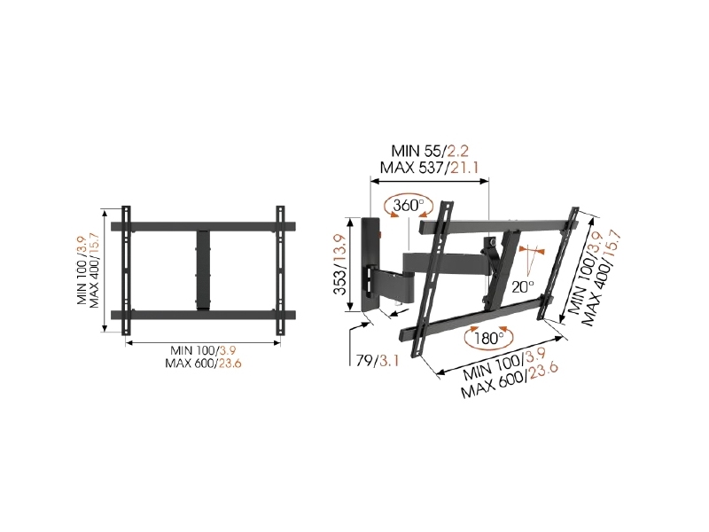 Uchwyty do telewizorów Vogels W 53080 Vogels posiadają uniwersalny rozstaw otworów montażowych VESA (maksymalnie 600 x 400 mm), które pozwalają na ścienny montaż większości ekranów LCD/LED o przekątnej od 40 do 65 cali. Odporna na zgięcia i złamania konstrukcja uchwytu TV W53080, zapewnia optymalny poziom bezpieczeństwa dla TV o wadze do 30 kg. Na uwagę zasługują także zaciski do wygodnego prowadzenia kabli połączeniowych oraz wbudowana poziomica.